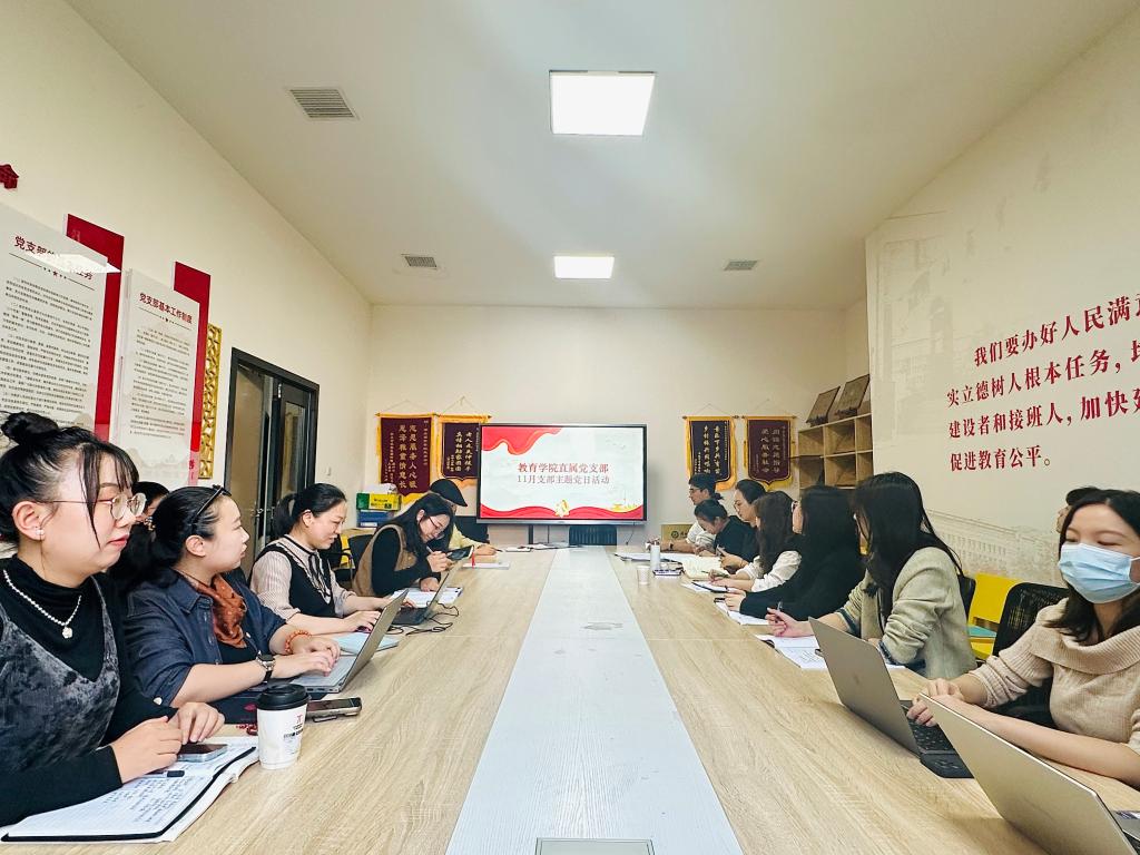 1113日下午,yl6809永利集团直属党支部在创新创业大楼304会议室召开了“学习三中全会精神强化使命责任担当”主题党日活动。此次活动由yl6809永利集团直属党支部书记郑洁主持,yl6809永利集团全体无课教师党员、学生党员及发展对象代表参加。