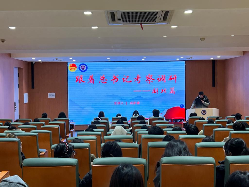 成家睿以习近平总书记实地考察调研湖北作为切入点,回顾了近年来习近平总书记在湖北考察时的多个重要场景和讲话内容。他强调,作为新时代的青年人,要深刻领会习近平总书记重要讲话精神,将个人成长与国家发展紧密结合,不断提升自己的综合素质和实践能力。同时,青年团员们要积极参与学校和社会服务,发挥先锋模范作用。