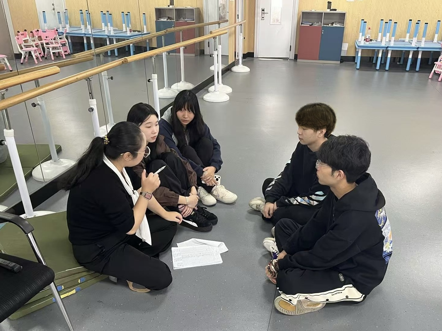 志愿者们进入学校之后就投入到了工作之中,两天的时间虽然紧促,但是志愿者们还是完成了动作的排练。在此期间,志愿者们引导孩子们完成了节拍的学习。在教授孩子们《wake》舞蹈的同时,还为学生们讲述了舞蹈的美学,动作舒展开的作用,排列好了运动会开幕舞蹈的队形。志愿者们一步一步耐心的纠正动作,带领着孩子们熟悉了节拍与音乐,也将动作融入了其中。在练习途中保持着严肃,在休息期间也与孩子们亲切的交流。在10月24日,孩子们也完美的完成了运动会开场舞蹈的表演。