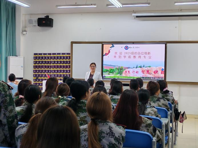9月24日,学前教育专业在咸宁校区C109教室举办了“2025级新生入学教育——学前教育专业介绍”专题活动。教研室主任郝一双,以及张俊南、赵雪、黄诗雅、董洁、张越群、胡珊等专业教师共同参与。