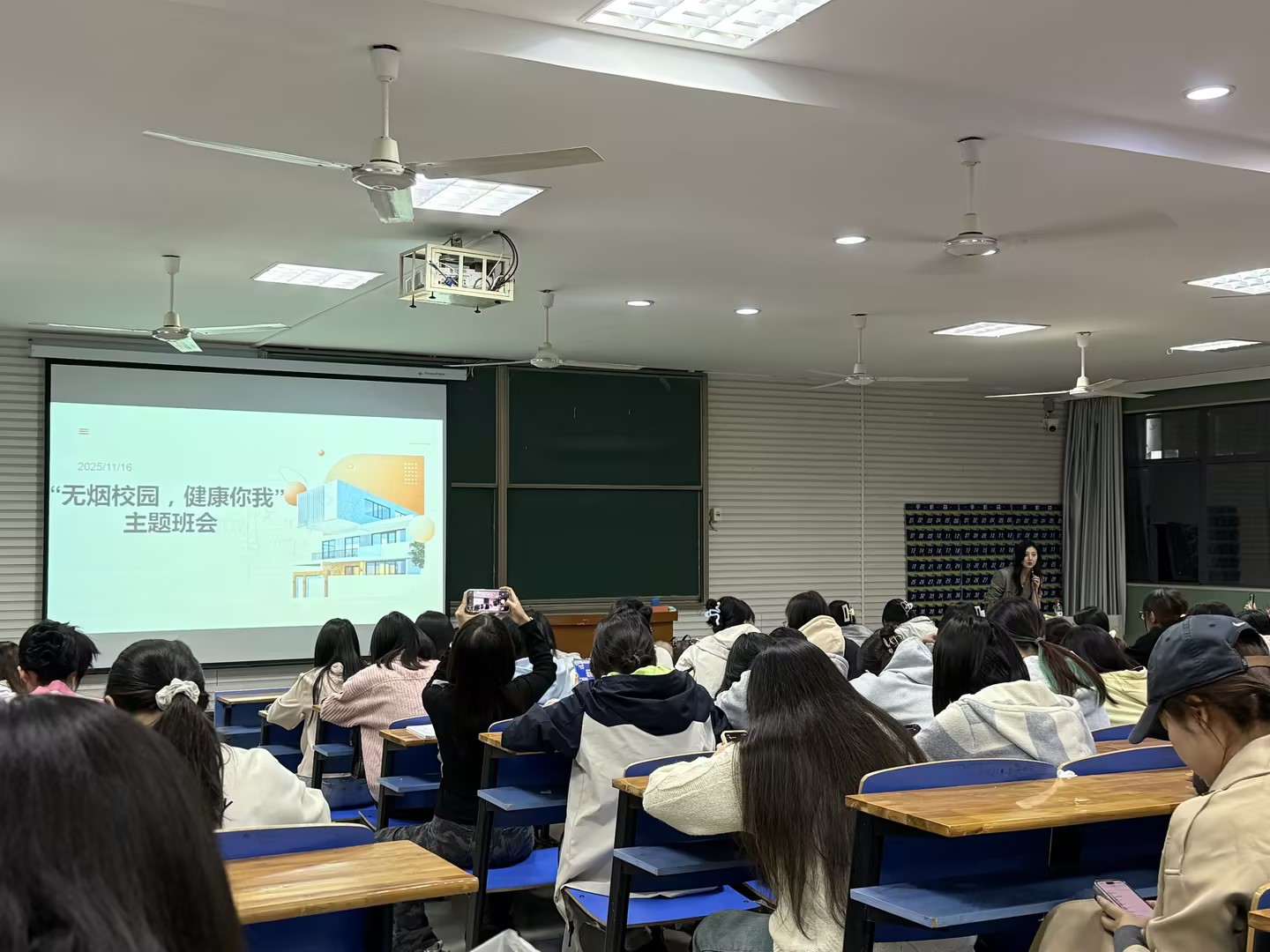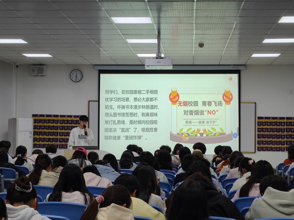 在主题班会上,辅导员们通过生动的案例分析、详实的数据展示,向同学们详细讲解了吸烟对个人健康和公共卫生的危害。同时,结合学校公共场所禁烟的具体要求,重点强调了教学楼、图书馆、宿舍等区域的禁烟规定,要求同学们自觉遵守,共同维护良好的校园环境。