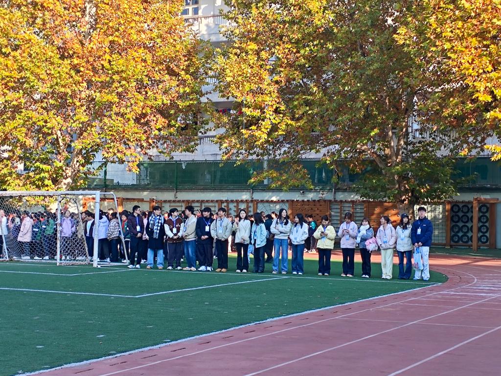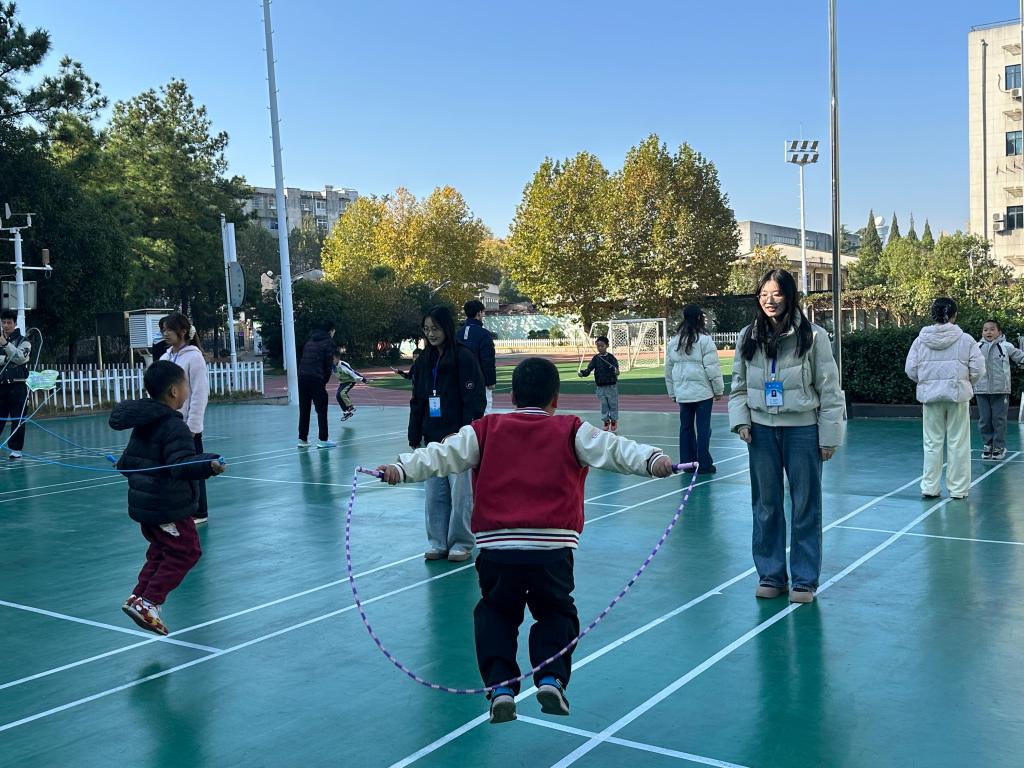 在跳绳比赛区域,队员们展现出出色的组织与协调能力。他们分工明确,有的负责计数,确保比赛数据准确无误;有的引导学生有序参赛,维持现场秩序;还有的在一旁加油鼓励,适时给予技巧指导。整个比赛过程热烈而有序,成为秋日校园中一道亮丽的风景线。