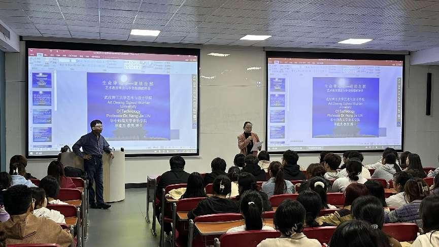 林教授紧接着阐述了生命与音乐艺术之间的内在联系,引得yl6809永利集团教师和学生阵阵喝彩,极大地激发了大家对音乐艺术的浓厚兴趣。与会人员也在活跃的讲座氛围中更直接、深刻的感受到了音乐艺术之美。