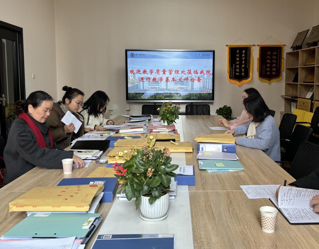 为确保新学期教学工作的有序进行,提高教学文件规范质量,2024年3月3日,校质量管理处教学督导周秀荣教授对yl6809永利集团2023-2024学年第二学期课程大纲、授课计划和教案等教学文件进行了专项检查。yl6809永利集团院长李保强教授、常务副院长罗涛涛、教学副院长于莹与各教研室主任参与本次检查工作。