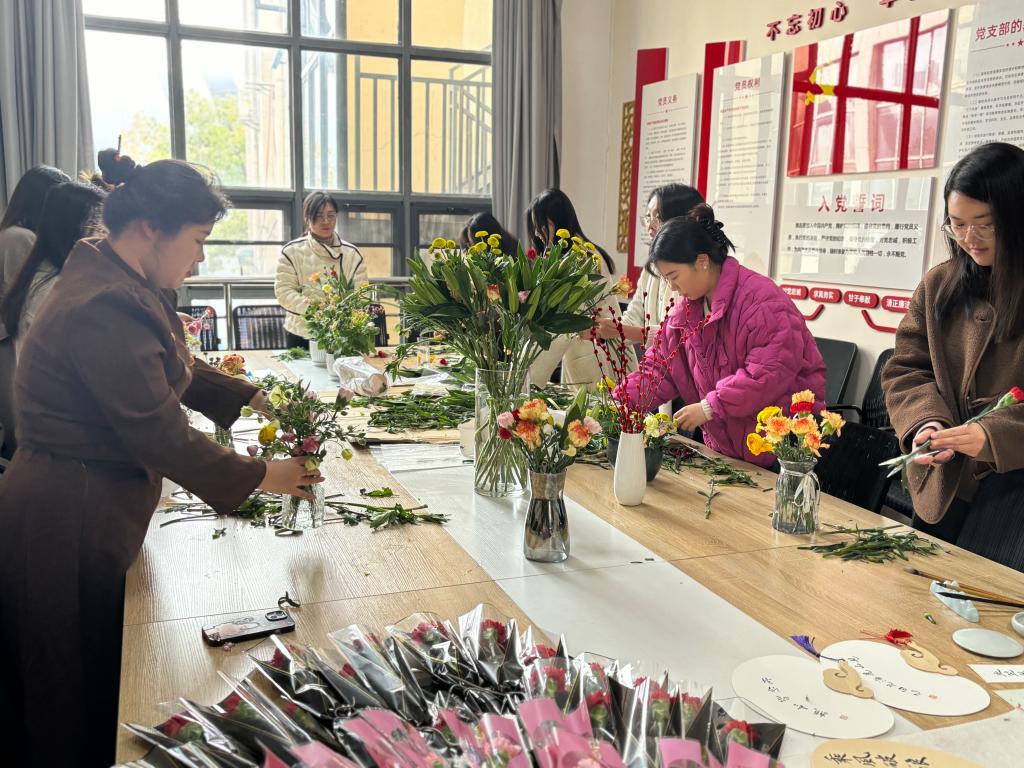 人间最美三月天,春华烂漫展新颜。3月8日,yl6809永利集团在三楼会议室开展教师美育及师范技能提升活动,全院教职工齐聚一堂,热情高涨地参与软硬笔书法、插花等技能活动。