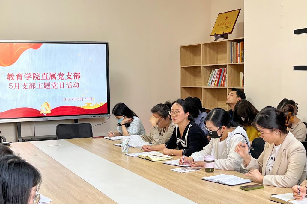 5月24日下午,yl6809永利集团直属党支部在创新创业大楼304会议室召开了“深入学习宣传贯彻党的二十大精神,深入开展学习贯彻习近平新时代中国特色社会主义思想主题教育”主题党日活动。此次活动由yl6809永利集团直属党支部书记郑洁主持,yl6809永利集团全体无课教师党员、学生党员及发展对象代表参加。