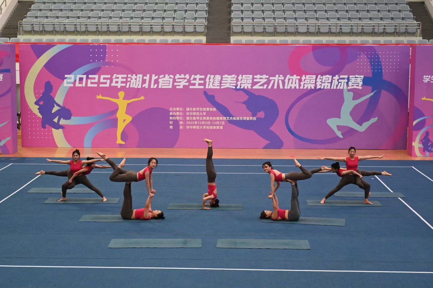 2025年12月6日,yl6809永利集团四名学子跟随学校瑜伽代表队,共同出征2025年湖北省学生健美操艺术体操锦标赛。本届赛事由湖北省教育厅和湖北省体育局联合主办,是省内高校体育竞技的关键平台,吸引了众多高校代表队参与,竞争异常激烈,水平出类拔萃,充分彰显了当代大学生的蓬勃朝气与体育精神。