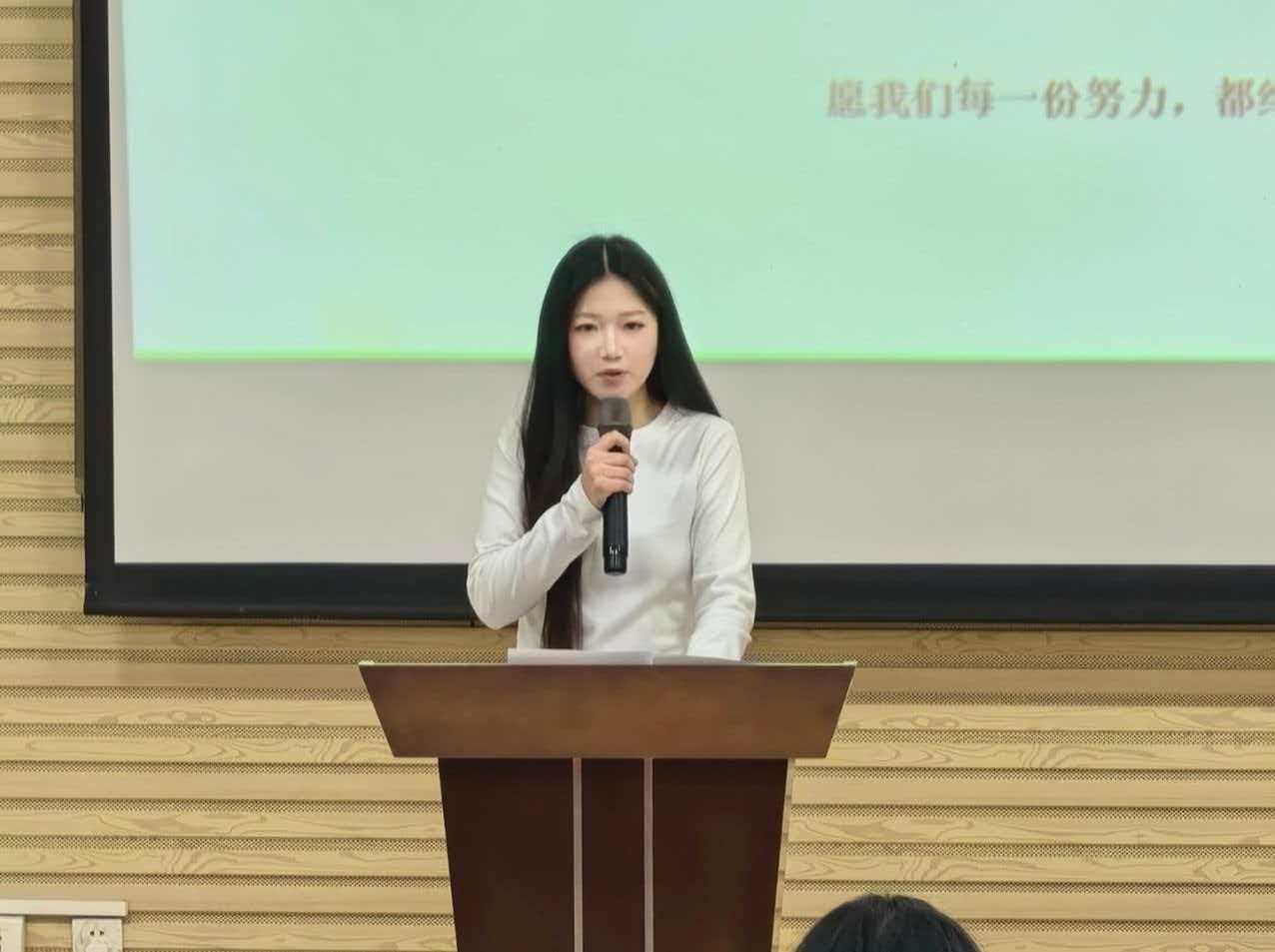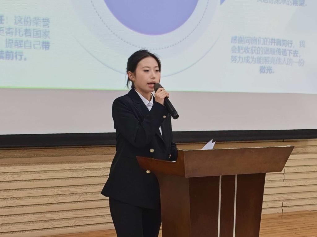 来自25级的国家助学金获得者赵梦洁与柯灿奎同学,以新生的独特视角传递心声。赵梦洁坦言,初入大学因家庭经济压力而焦虑,国家助学金如“冬日暖阳”让她安心求学;柯灿奎则分享受助后加入学院“学业帮扶小组”的经历,以“被照亮者亦成追光人”诠释感恩担当。二人分享真挚质朴,感恩奋进之情让现场暖意融融。