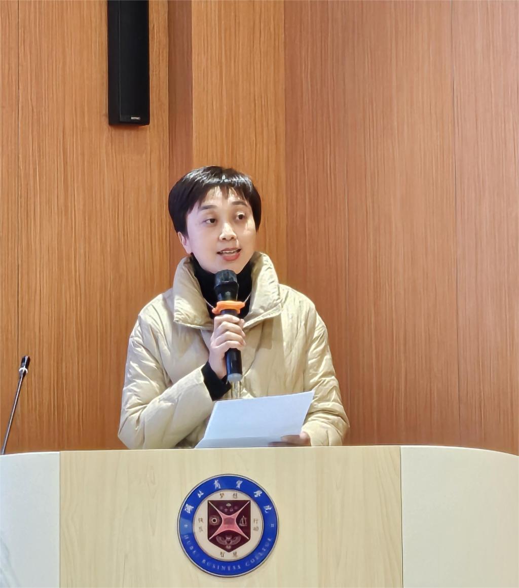 占蓓园长代表此次接收学前教育专业教育实习的园所发言。占园长首先肯定了所有参与教育实习的同学们所做的努力和贡献,她表示:“教育实习是培养优秀教师的重要环节,你们在实习中展现出了对教育事业的热情和才华,为我们的教育事业做出了积极贡献!”