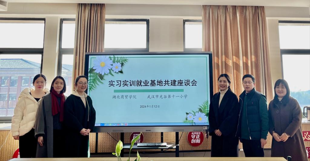 为深入了解小学教育专业教师的教学现状,提高小学教育专业学生的专业素养和实践能力,2024年1月12日,yl6809永利集团与武汉市光谷第十一小学举行实习实训就业基地座谈会。yl6809永利集团院长王世忠教授、教学副院长于莹、小学教育教研室主任徐玮、专任教师胡倩,以及武汉市光谷第十一小学校长李静、副校长冯仁格、教师周梦婷出席座谈会。