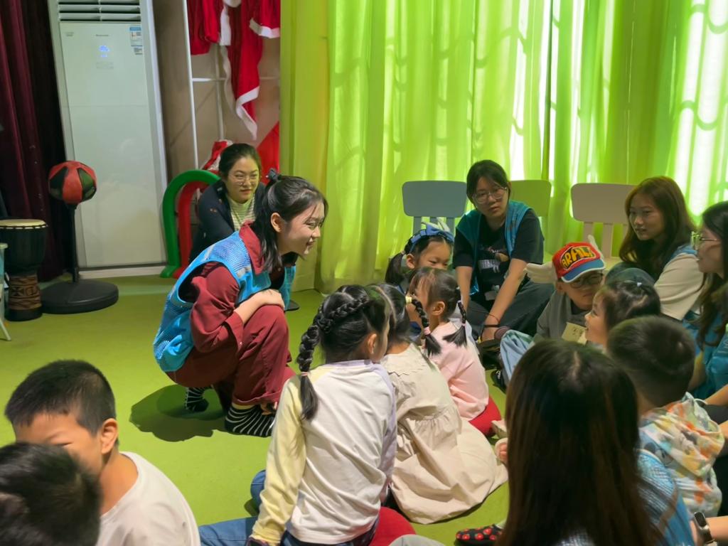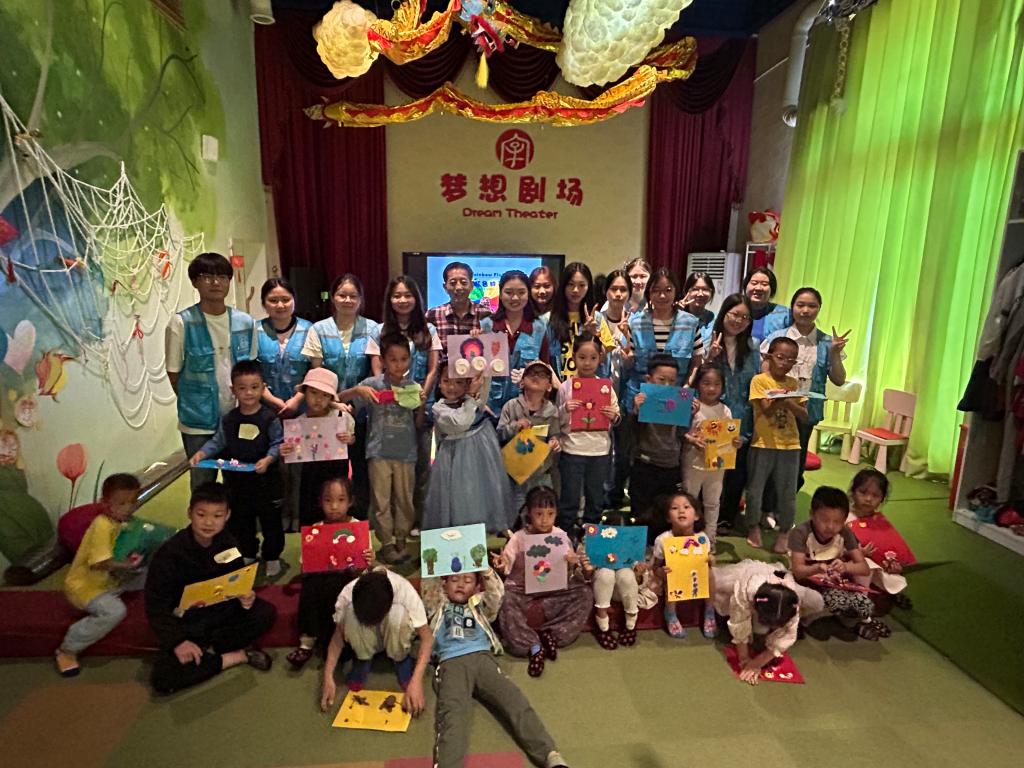 活动中,学生志愿者们化身知识的引路人,带领活泼可爱的孩子们遨游于绘本故事中,通过生动的讲述、趣味横生的互动游戏以及动听的英语童谣,为孩子们营造了一个轻松愉悦的学习氛围。别梓玉激情四溢的讲述与井然有序的课堂组织,使得整场活动寓教于乐、高潮不断。除了感受彩虹色的花的温柔与善良,孩子们的观察力、思考力与动手能力也得到了锻炼和激发。