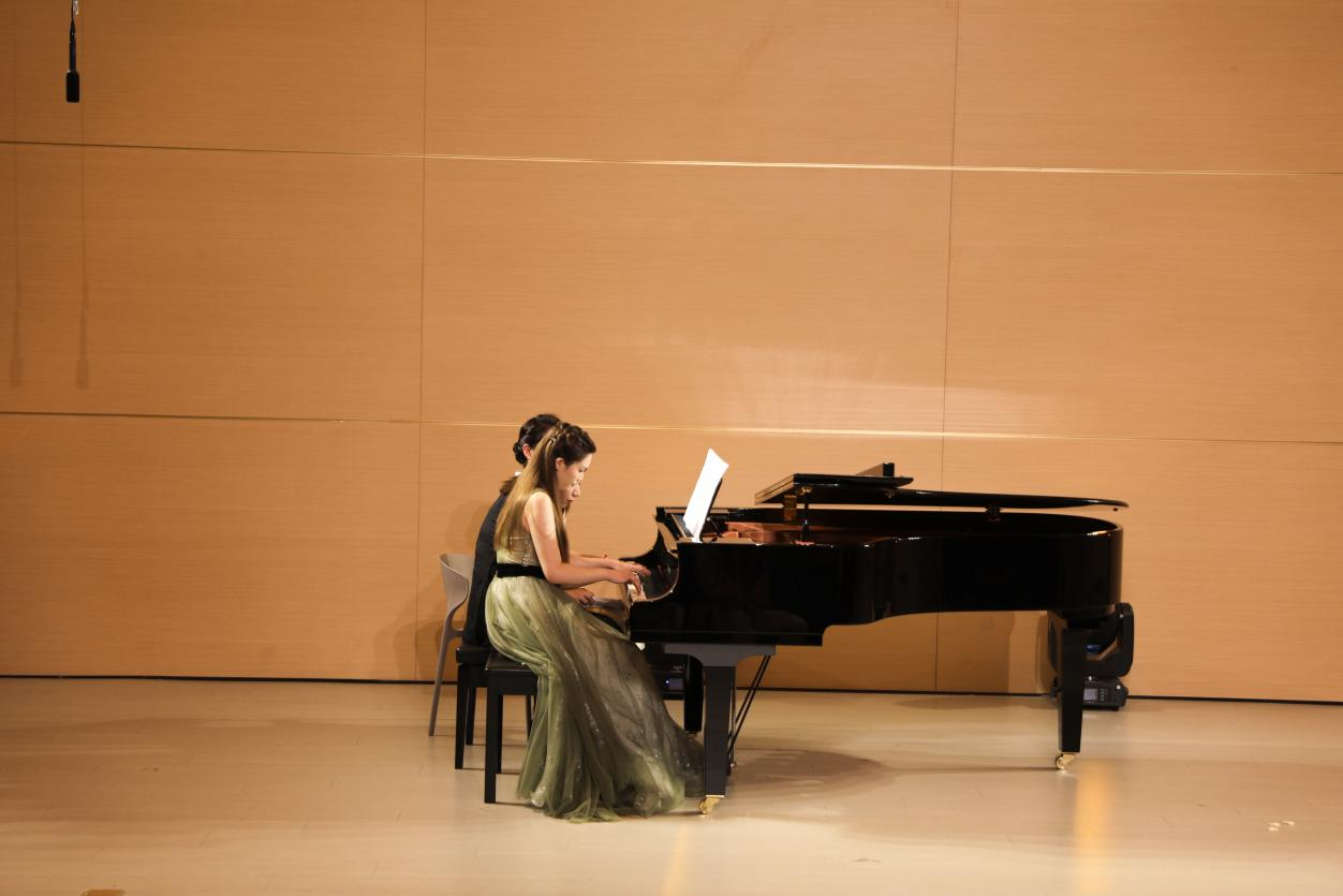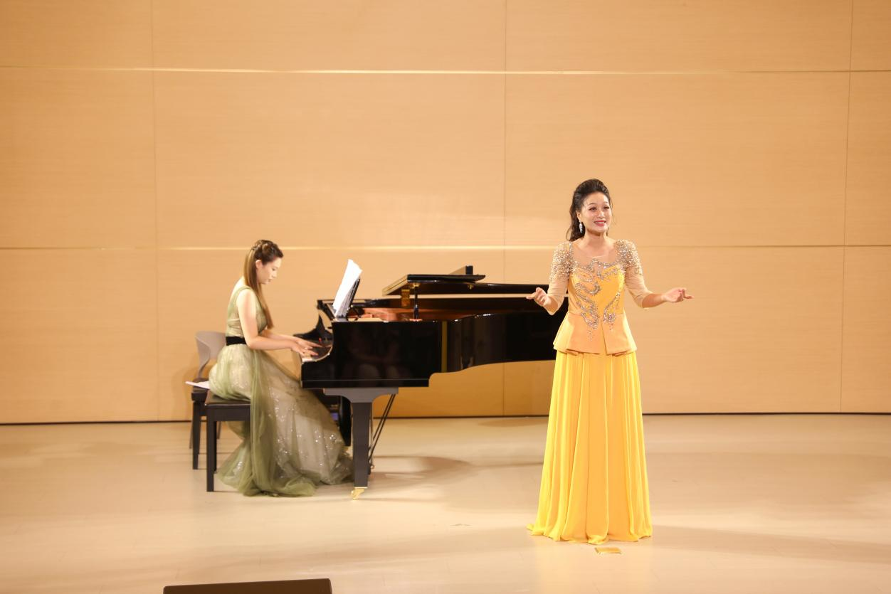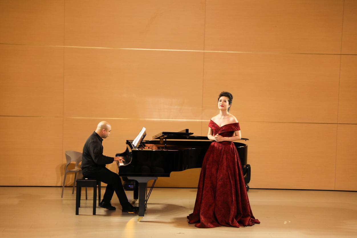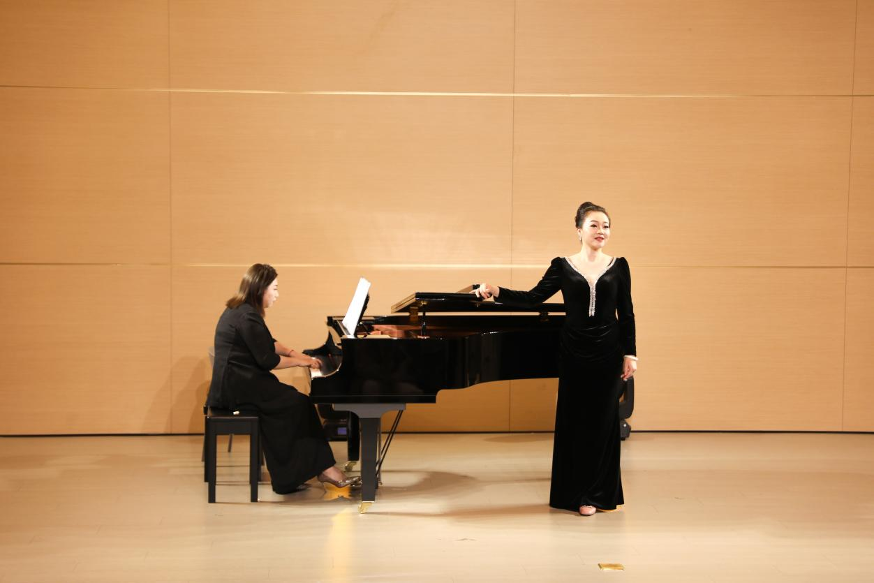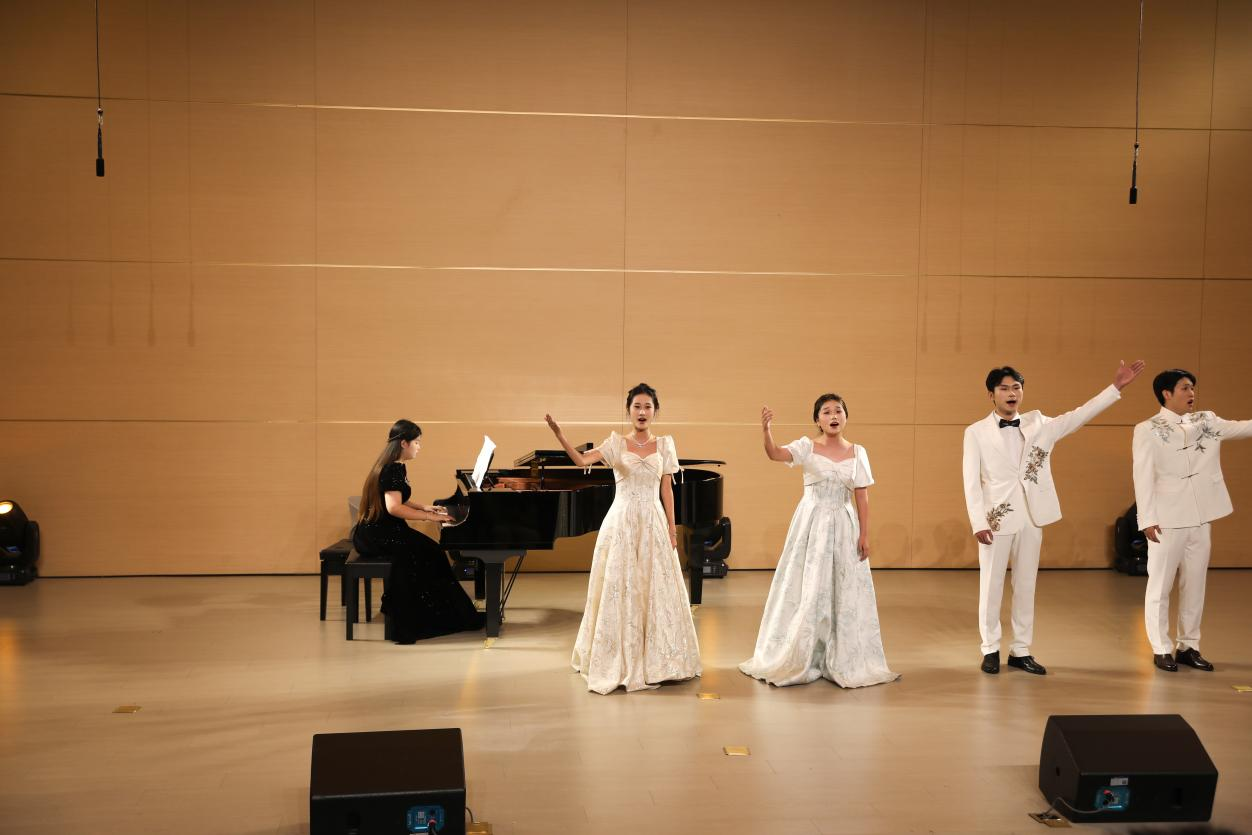 音乐会在一首意境悠远的艺术歌曲《锦瑟》中拉开帷幕,演唱者以醇厚细腻的嗓音,使观众沉浸于静谧而唯美的氛围之中。整场音乐会曲目编排独具匠心,14首精选作品横跨中西、纵贯古今:既有《望乡词》中对家国故土的深切眷恋,也有《彩云追月》的灵动悠扬,仿佛将皎洁月色下的粼粼波光呈现在眼前;《多谢了,朋友们》则以明快活泼的节奏传递出真挚情谊,阿根廷经典曲目《自由探戈》中,钢琴四手联弹的激情碰撞展现出浓郁的异域风情,瞬间点燃现场气氛;而《关雎》以古朴典雅的曲调再现《诗经》的浪漫意境,演唱者的唱腔婉转悠扬,尽显中华传统文化之美。