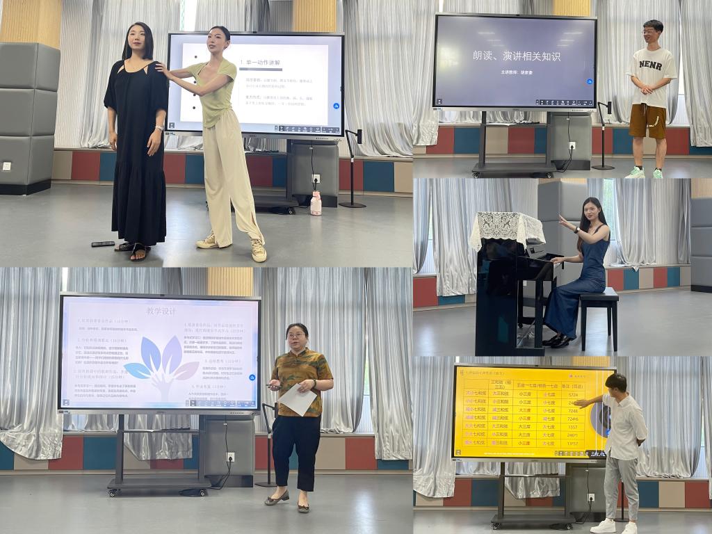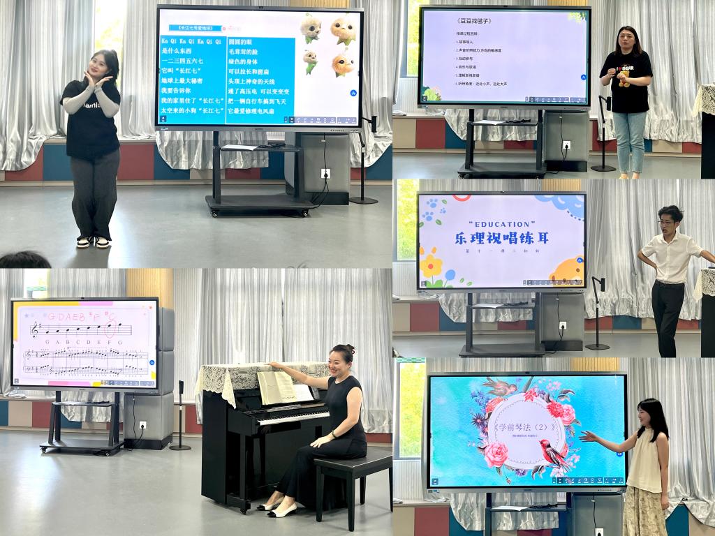 本音乐舞蹈教研室共有10位教师进行3-5分钟的说课和15分钟的授课。参与磨课的教师们借助现代教学技术呈现教学方案、思路和方法,展示了扎实的基本功和认真的教学态度。设计课程包括《幼儿舞蹈基础》、《幼儿舞蹈改编》、《幼儿音乐基础》、《普通话与教师口语》、《视唱练耳1》、《乐理视唱练耳》、《基本乐理》、《大学美育》、《学前琴法(2)》。