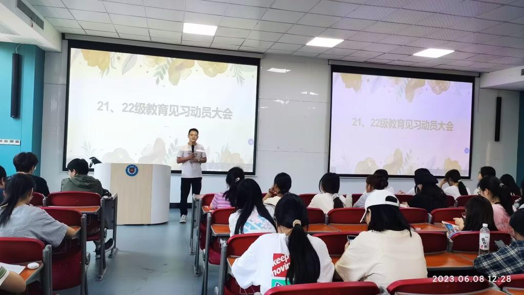 教育见习是学前教育专业教学计划的重要组成部分,是培养学前教育师资的关键环节,能够帮助学生认识、了解和熟悉幼儿教育,对进一步巩固专业思想和提高学生从事幼儿保教活动的综合实践能力,有着十分重要的意义。本次动员大会帮助学生们明确了见习的具体任务要求,为其积累实践经验奠定了扎实的基础。希望21和 22级学前教育全体本科生能在知行合一中砥砺才干,收获全方位的成长。