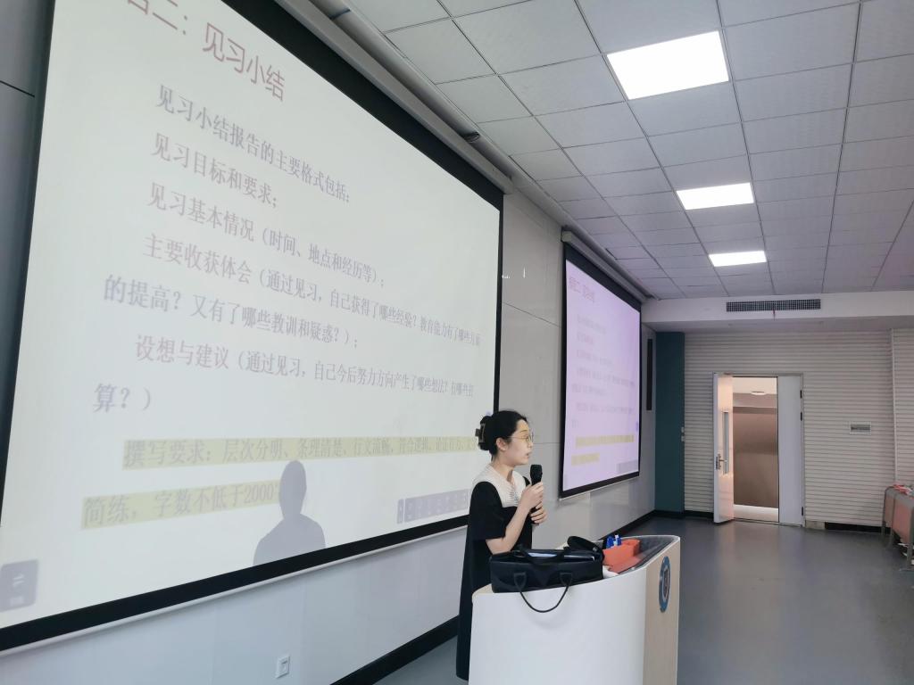 指导老师王志专、桂青林和同学们进行了见面与交流,强调了外出学习的纪律要求,并期待同学们能在本次教育见习活动中,将课堂所学的理论知识融合到实践中去,用心观察和体会,逐渐成长为具有“实践能力、团队合作能力、人际沟通能力和发展潜力”的“四力”人才。