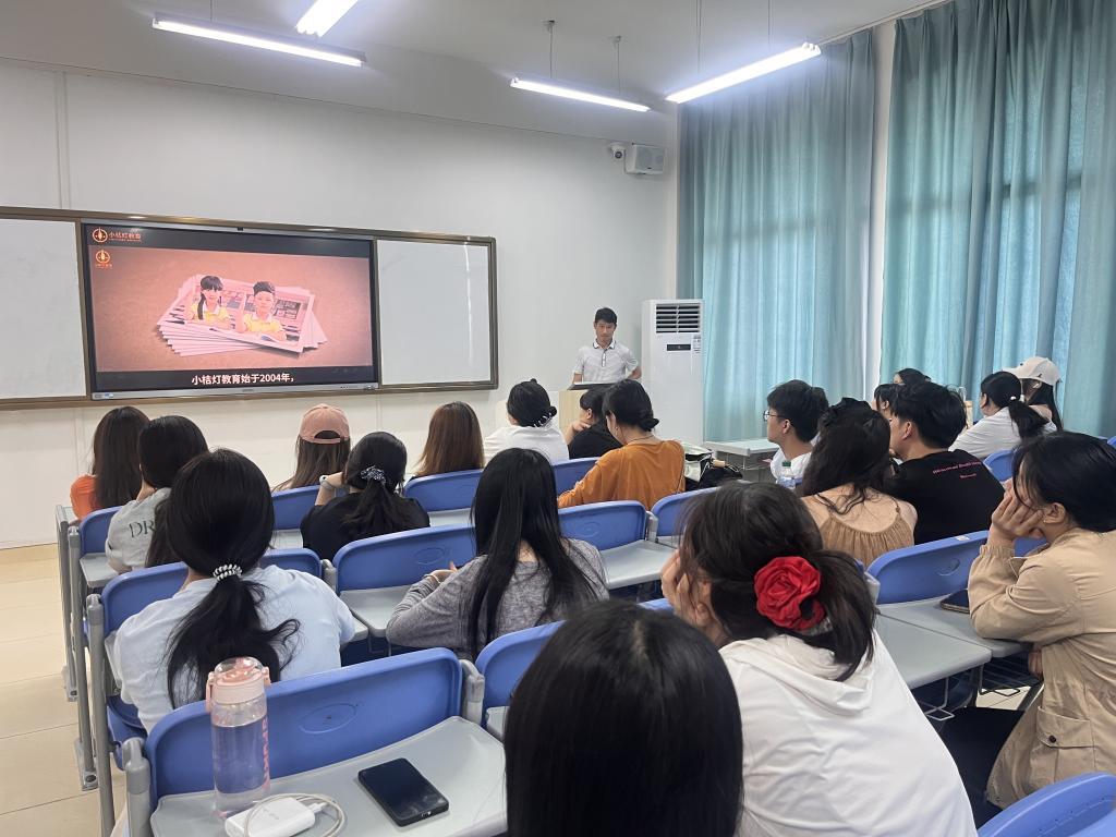 5月14日下午,通山小桔灯文化艺术培训有限公司于教学楼B210成功举办宣讲会。宣讲会由公司负责人孟祥活主讲,吸引了众多教育专业学子到场参与,为校企双方搭建起双向选择的人才交流桥梁。