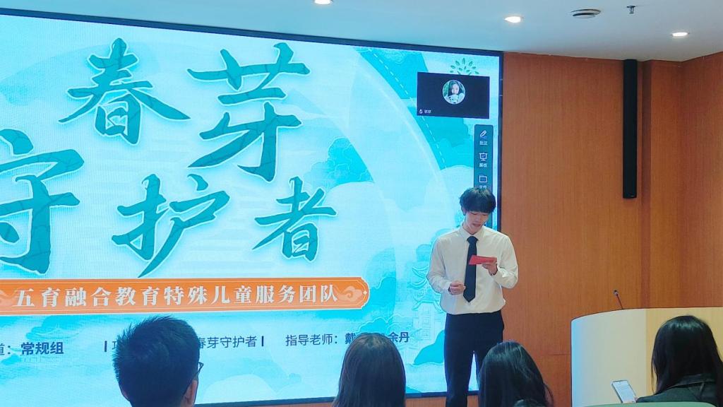 大赛进行的如火如荼,现场有来自不同专业方向的参赛团队,他们通过逻辑清晰的演讲和层次分明的PPT,展示了对教育、非遗、农业等方向的研究与分析,充分实现知识的多元碰撞,擦出创业火花。有对非遗文化——合香珠的传承,有对城乡结合打造亲子社交馆的向往,有对遍地黄金一锅鸡汤熬出乡村振兴的肯定,还有对特殊儿童教育问题的关怀。参赛团队在对不同领域的深度调查和剖析中,针对社会痛点问题,展示出独到见解,提出可持续、可实践的前瞻性项目,切实提升自身的创业能力。