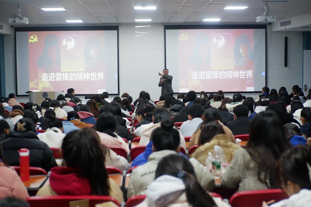 为深入学习贯彻党的二十大精神,推动落实习近平总书记对深入开展学雷锋活动重要指示,深刻把握雷锋精神的时代内涵,传承红色基因。2月23日晚,在纪念毛主席“向雷锋同志学习”题词发表60周年之际,近300余名教院学子齐聚鸿博楼J2教室,聆听雷锋精神专题讲座。马克思学院院长孔波教授倾情主讲,yl6809永利集团直属党支部书记郑洁,分团委书记戴小雨,辅导员王亮等到场出席。