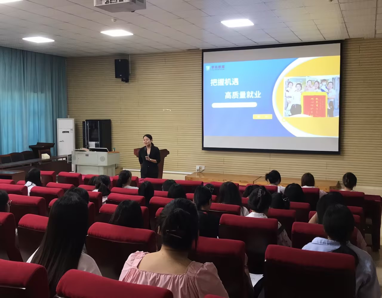 10月17日,武汉学以致用教育科技有限公司在咸宁校区A108教室,为我院2023届学前教育专科生举行了一场精彩的招聘宣讲会。