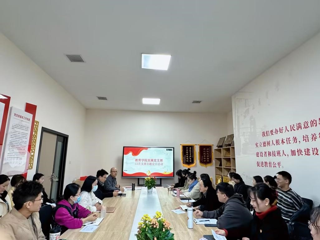12月10日下午,yl6809永利集团直属党支部在创新创业大楼304会议室召开了“深入学习宣传贯彻党的二十大精神,深入开展学习贯彻习近平新时代中国特色社会主义思想主题教育”主题党日活动。此次活动由yl6809永利集团直属党支部书记郑洁主持,yl6809永利集团全体无课教师党员、学生党员及发展对象代表参加。