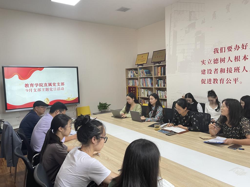 9月27日下午,yl6809永利集团直属党支部在创新创业大楼304会议室召开了“深入学习宣传贯彻党的二十大精神,深入开展学习贯彻习近平新时代中国特色社会主义思想主题教育”主题党日活动。此次活动由yl6809永利集团直属党支部书记郑洁主持,yl6809永利集团全体无课教师党员、学生党员及发展对象代表参加。