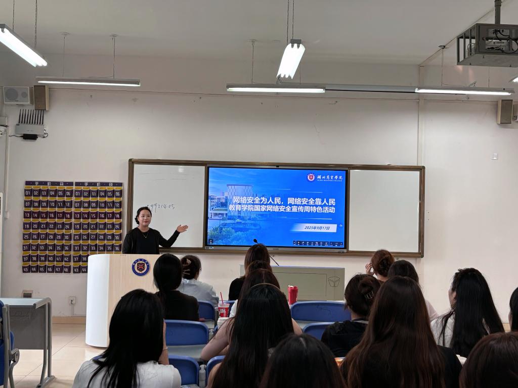 9月17日,武汉校区由学院党总支书记王珉,咸宁校区由副书记张香湘,同时面向两校区师生代表作了题为《筑牢网络安全防线,护航教育高质量发展》的专题宣讲。深入分析了当前网络安全面临的严峻挑战与国家战略要求,结合教育领域特点,强调了维护网络安全对保障教学科研秩序、保护师生个人信息、守护意识形态安全的重要意义。宣讲通过剖析真实案例,生动阐释了“没有网络安全就没有国家安全”的深刻内涵,号召全体党员师生发挥先锋模范作用,自觉成为网络安全的捍卫者、宣传者和实践者,共同筑牢学院网络安全的思想根基。