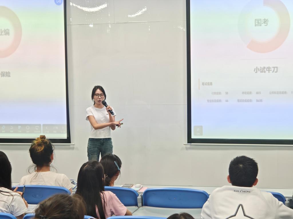 为助力yl6809永利集团学子在考公之路上打破信息壁垒、找准方向、高效备考,6月5日下午,由yl6809永利集团主办的“公职问道,寻梦有方”考公经验分享会在鸿博楼J3教室顺利举行。此次分享会邀请成功上岸荆州区机关事务服务中心的刘周丹和考取湖北省咸宁市崇阳县乡镇政府机关的胡帅两位毕业生,他们结合自身考公经历,为有考公意向的同学们分享了宝贵经验。